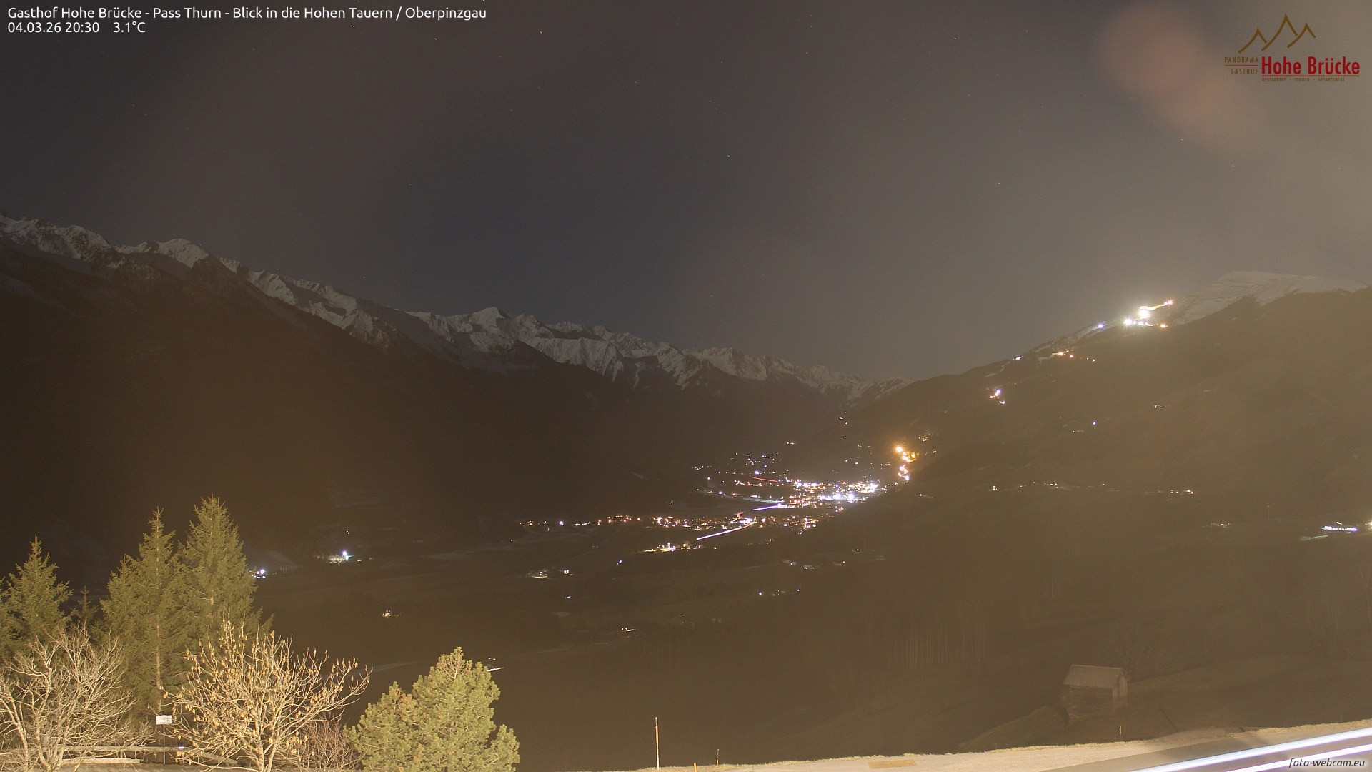 View of hotel / inn Hohe Brücke (Pass Thurn) in a southwesterly direction on Hohe Tauern mountains and Oberpinzgau.