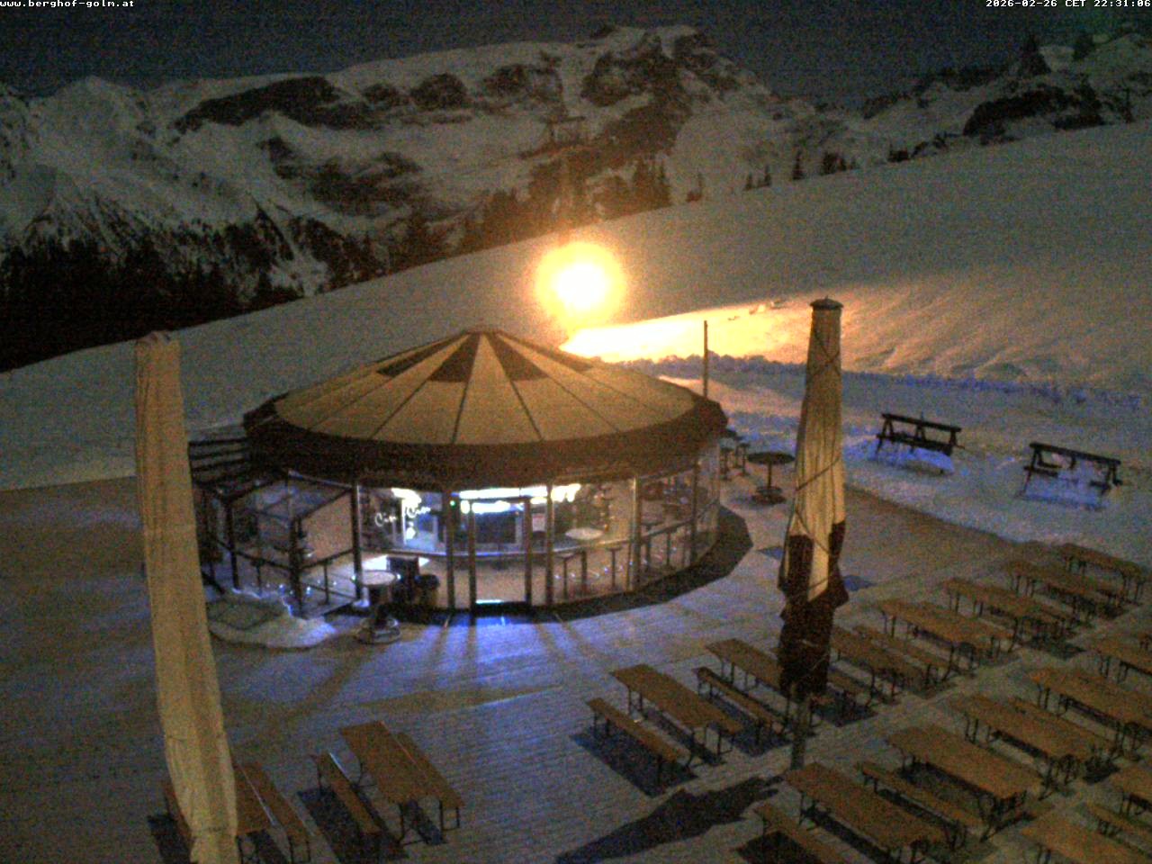 Archived webcam image showing Mountain restaurant "Berghof Golm" on 26 Feb 2026 at 00:50 23:00