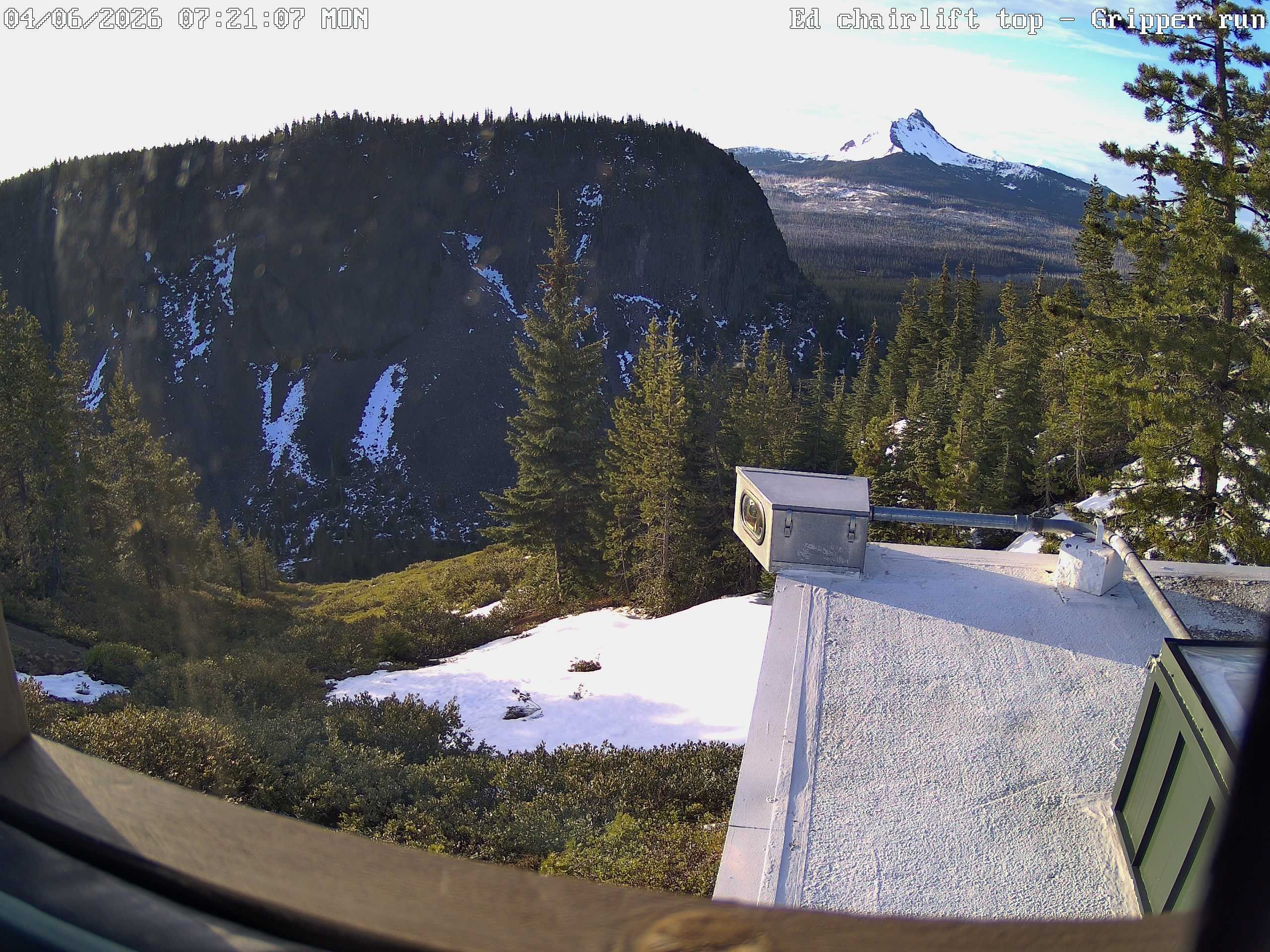 Archived webcam image showing Ed Chair Lift top station - view in south-east direction on 6 Apr 2026 at 16:19 07:00