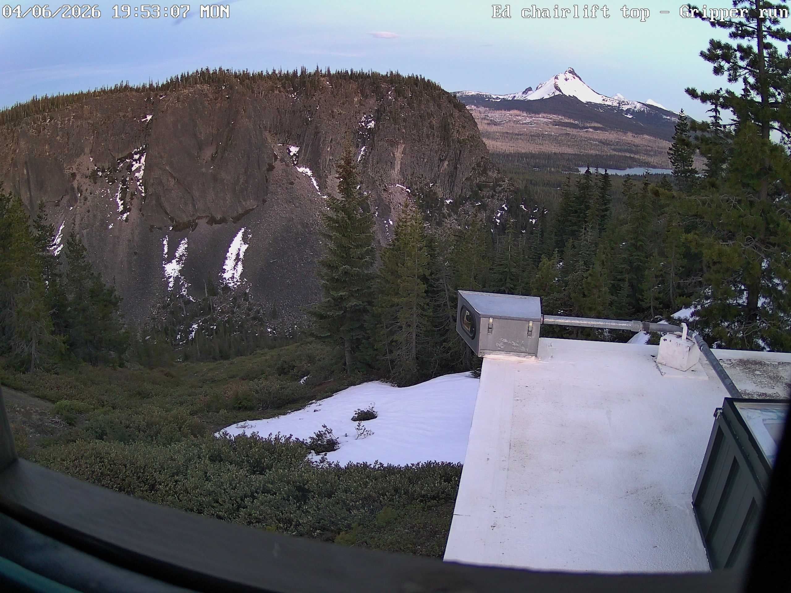 Archived webcam image showing Ed Chair Lift top station - view in south-east direction on 7 Apr 2026 at 04:19 19:00