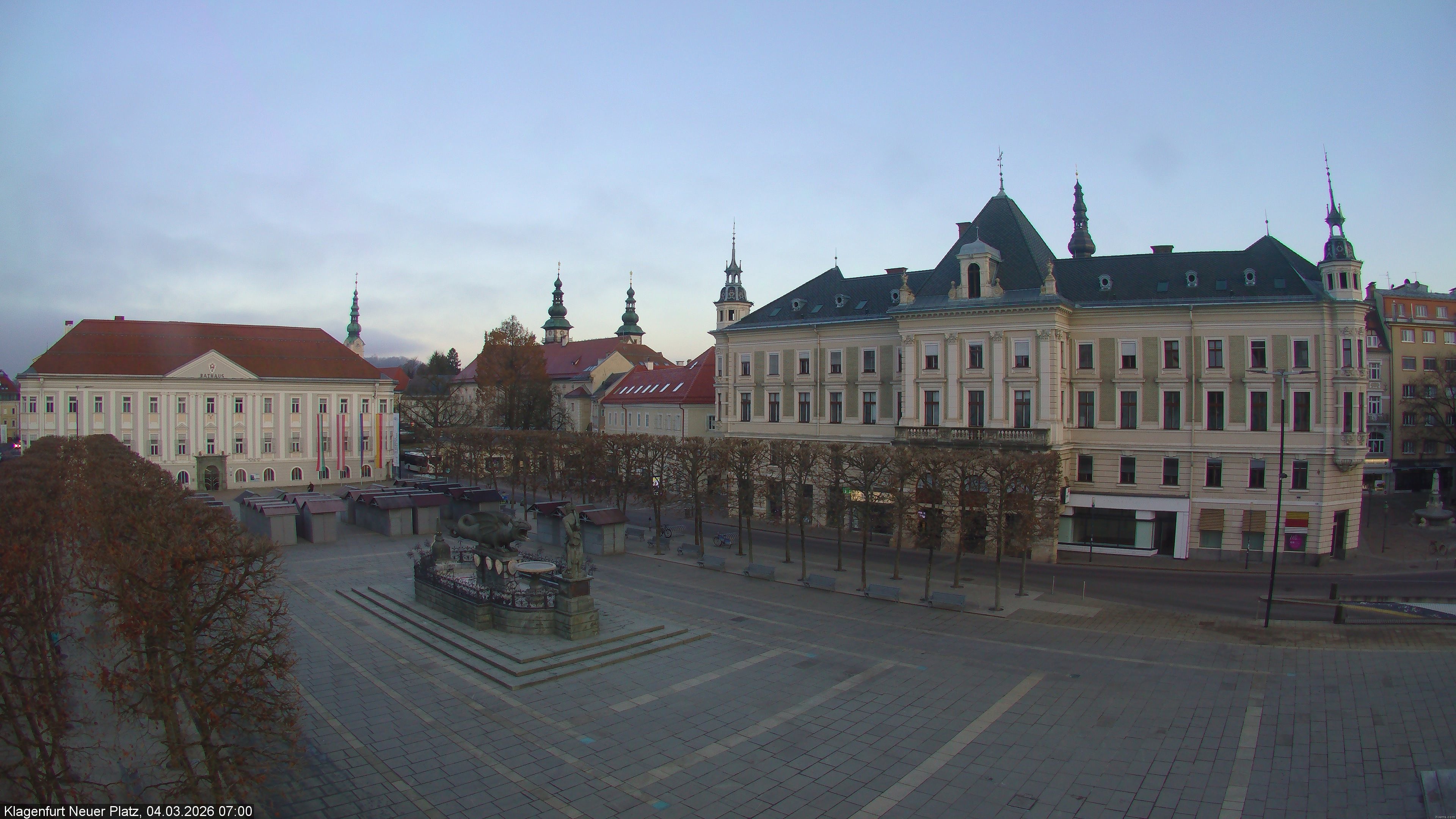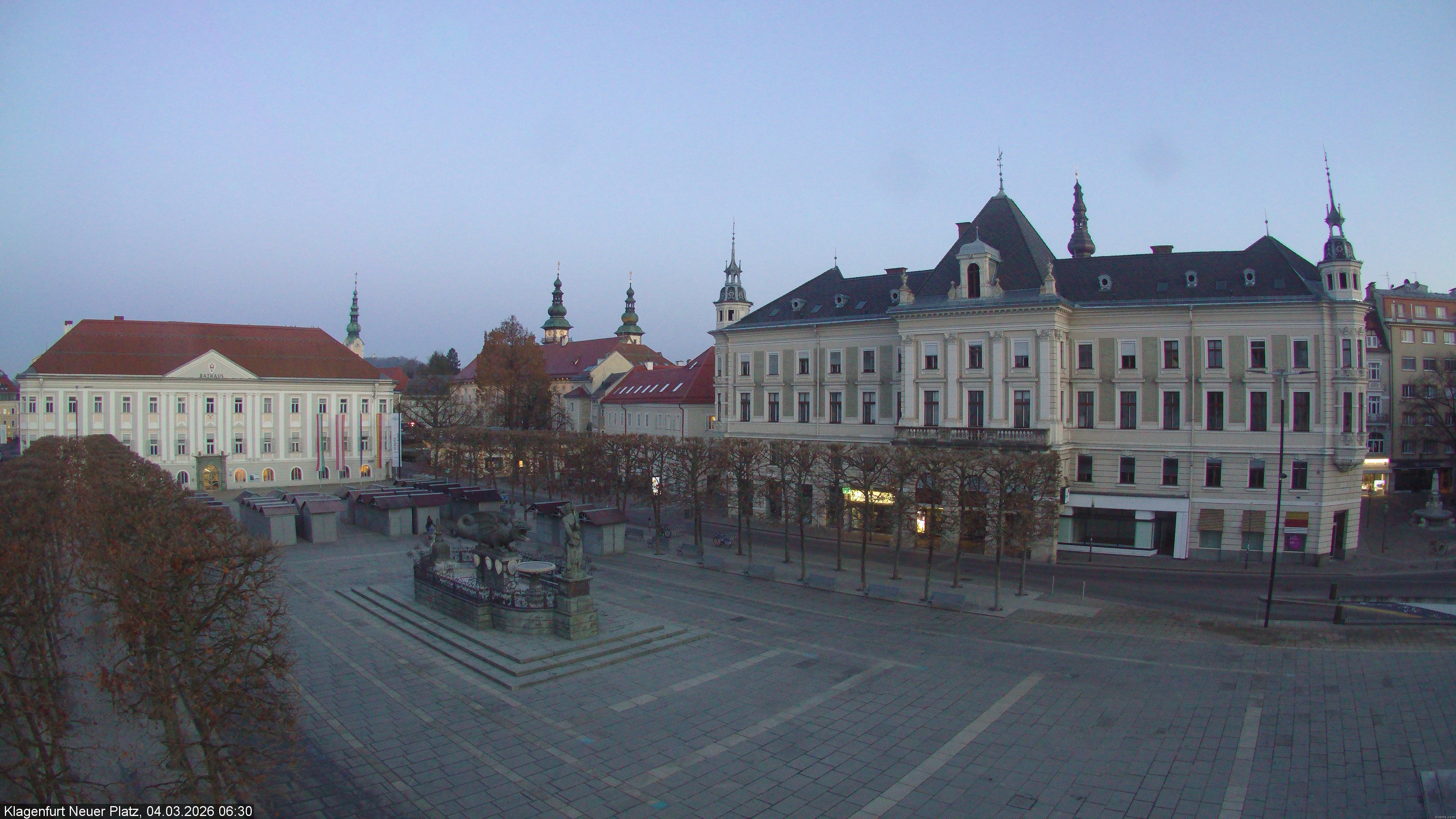 Archived webcam image showing Neuer Platz at Klagenfurt city on 4 Mar 2026 at 06:56 05:00