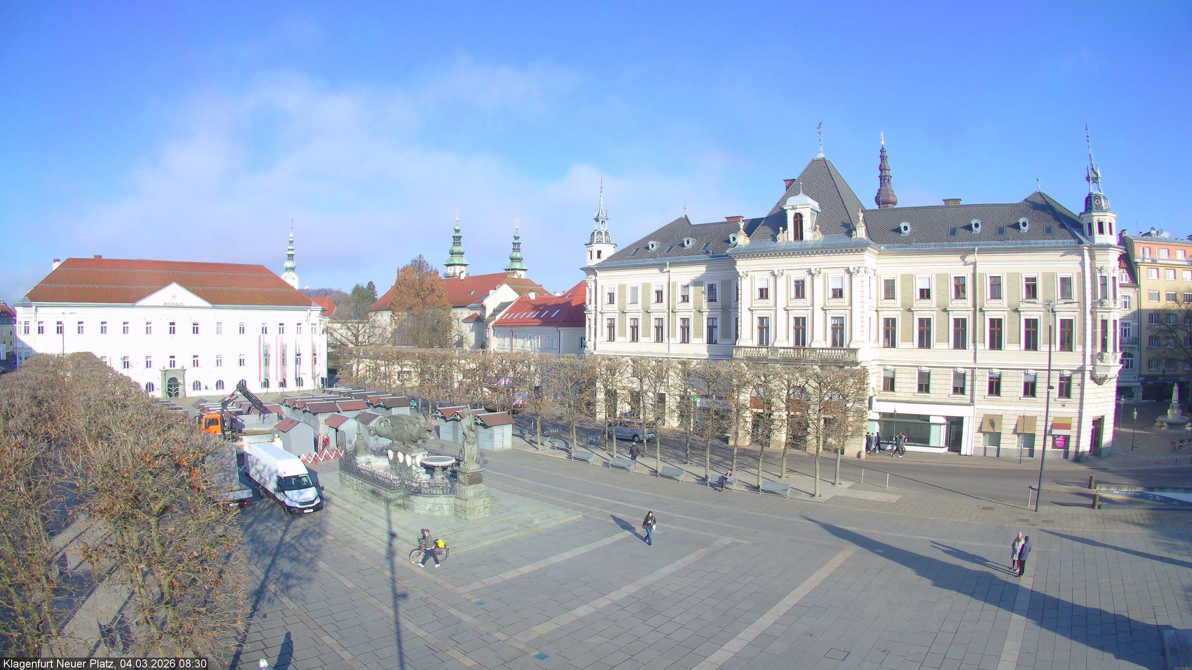 Archived webcam image showing Neuer Platz at Klagenfurt city on 4 Mar 2026 at 08:56 07:00