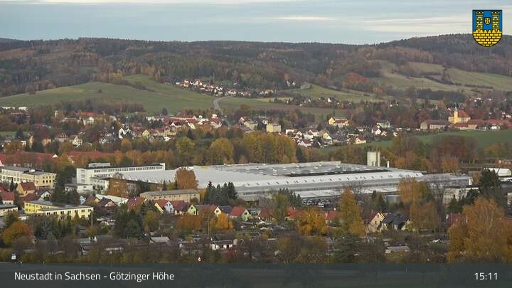 The webcam looks from the Götzinger Höhe to Neustadt in Saxony. This town in the Elbe Sandstone Mountains also includes the district of Rugiswalde, where you can find a small ski resort.