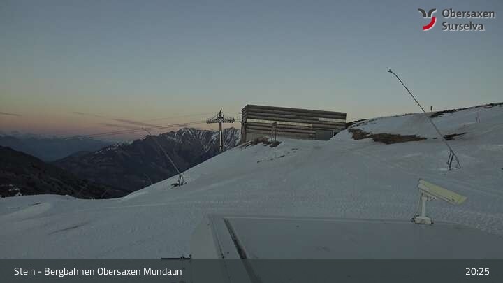 The webcam is located at the Untermatt top station in the Swiss ski resort of Obersaxen Mundaun. Skiers and snowboarders find blue and red marked runs here.