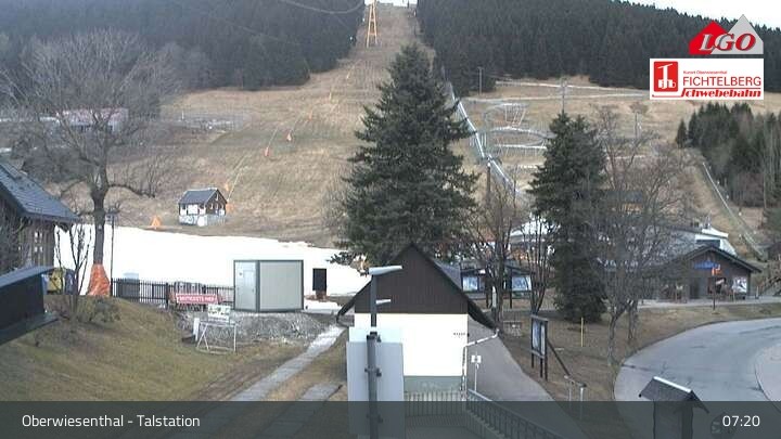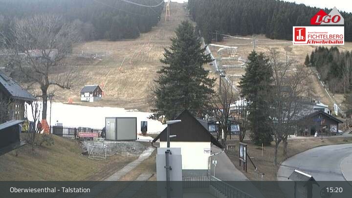 This webcam is located at the base station at the ski resort of Oberwiesenthal. It looks upon the lower part of Fichtelberg mountain.