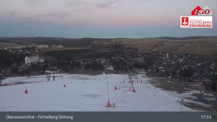 Archived webcam image showing Oberwiesenthal - Fichtelberg ski slope on 26 Feb 2026 at 05:26 04:00