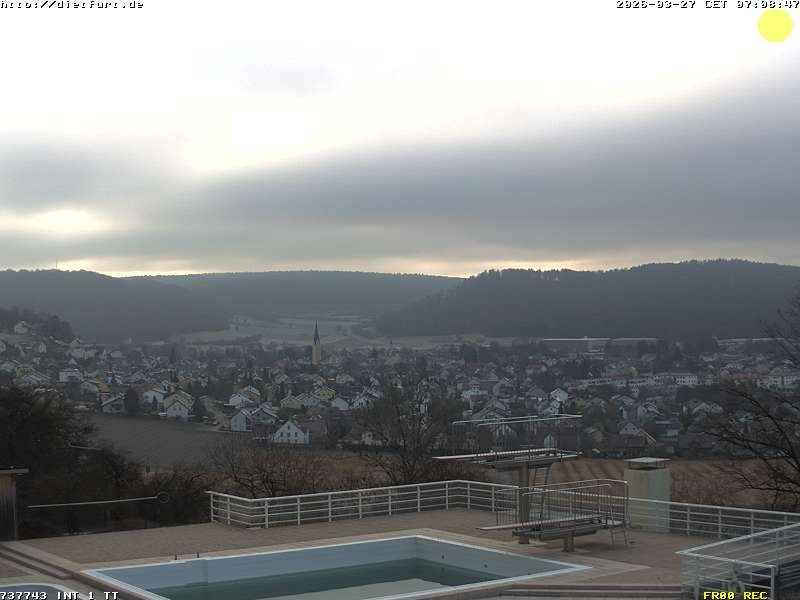 This webcam is situated by the 7-Täler-Panoramabad pool and shows you a great view of Dietfurt.