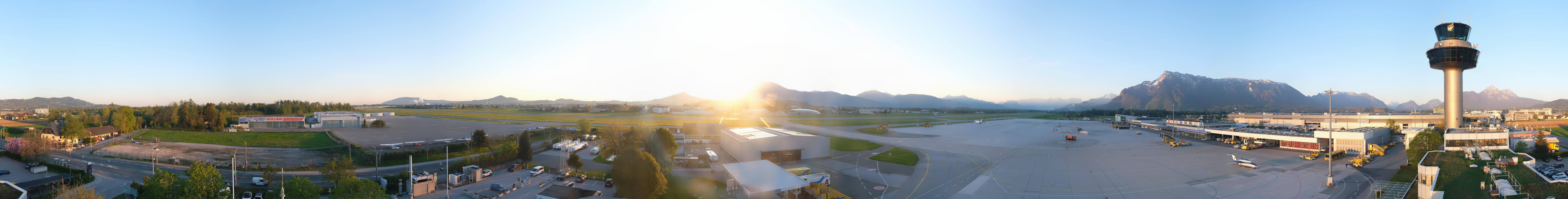 Archived webcam image showing Panoramic view of Salzburg Airport on 23 Apr 2026 at 18:34 17:00