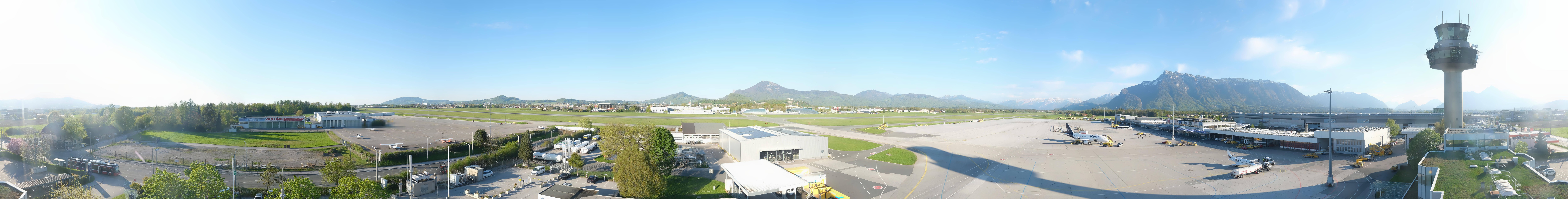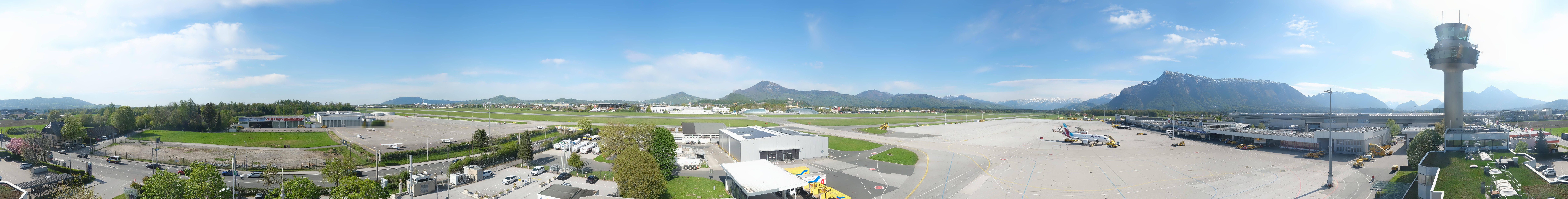 Archived webcam image showing Panoramic view of Salzburg Airport on 23 Apr 2026 at 10:34 09:00