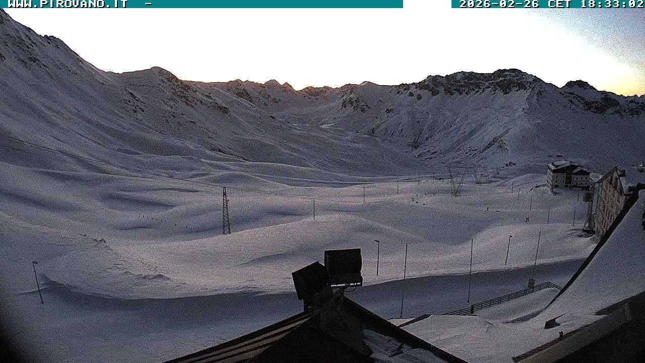 Archived webcam image showing Passo Stelvio, Valle del Braulio on 26 Feb 2026 at 18:23 Latest