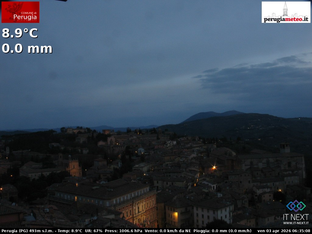 Archived webcam image showing Perugia - Umbria on 3 Apr 2026 at 06:20 05:00
