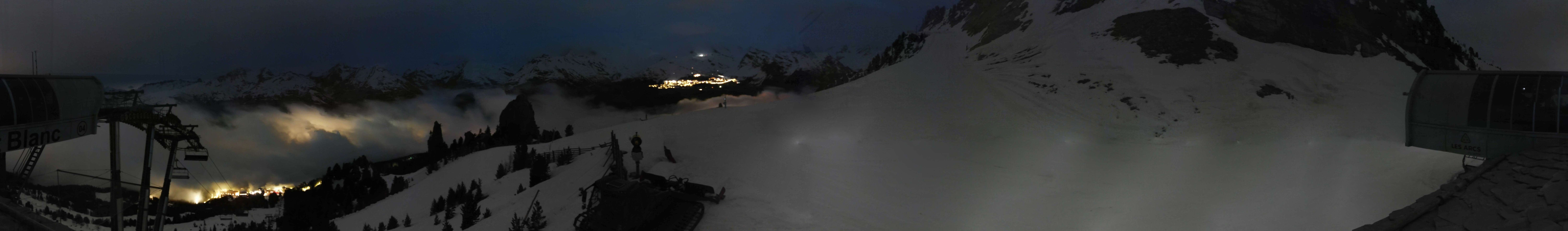 Archived webcam image showing Peisey Vallandry - Top station chairlift Clocheret on 13 Apr 2026 at 00:32 23:00