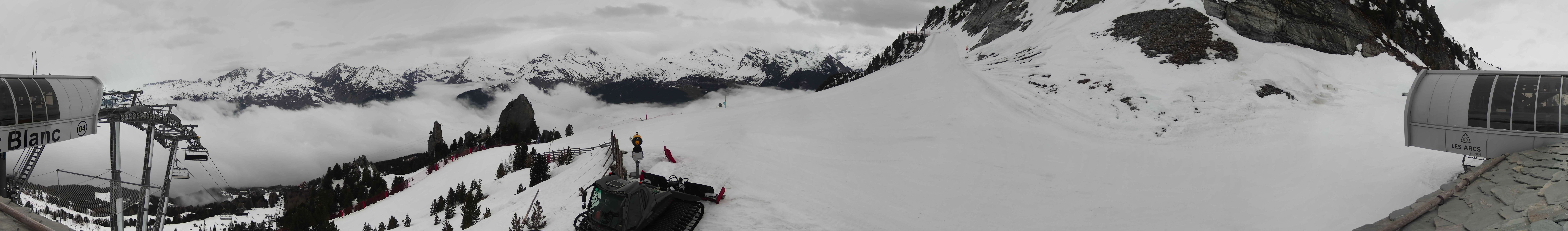 Archived webcam image showing Peisey Vallandry - Top station chairlift Clocheret on 13 Apr 2026 at 07:32 Latest