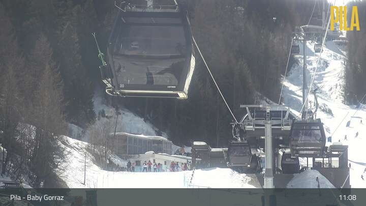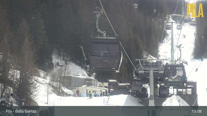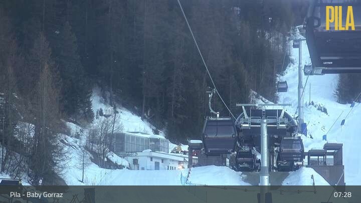 This webacam is located at the magic carpet Baby Gorraz at the Italian ski resort Pila Snowland. You can also see Gorraz chair lift.