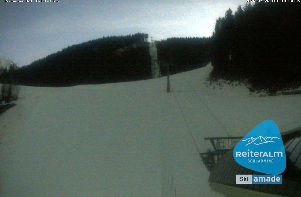 Archived webcam image showing Reiteralm: Preunegg Base Area on 26 Feb 2026 at 18:17 Latest