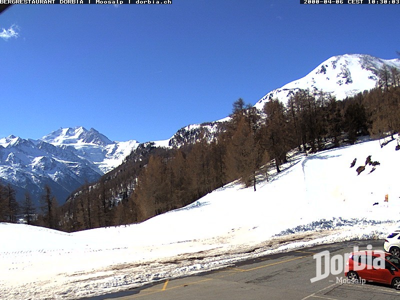 Archived webcam image showing Restaurant at Moosalp on 6 Apr 2026 at 10:49 Latest