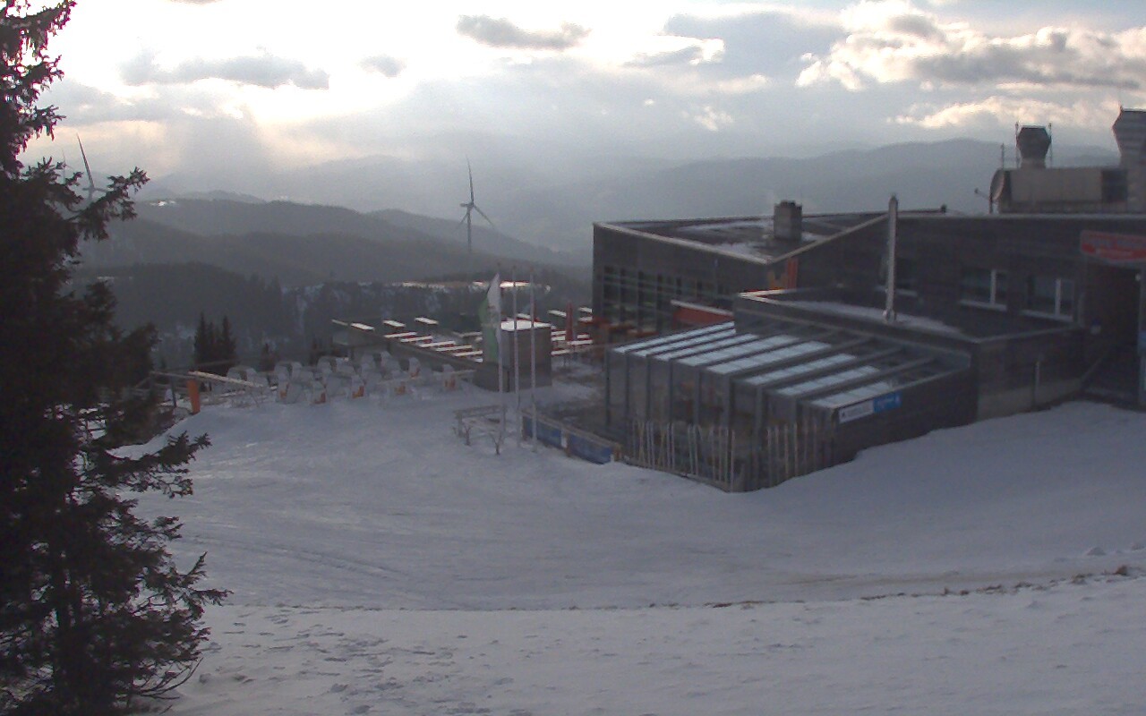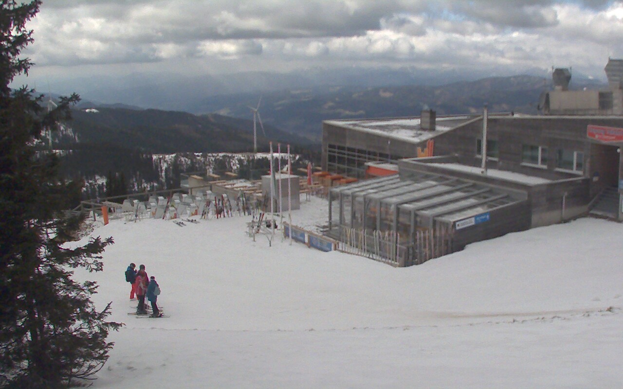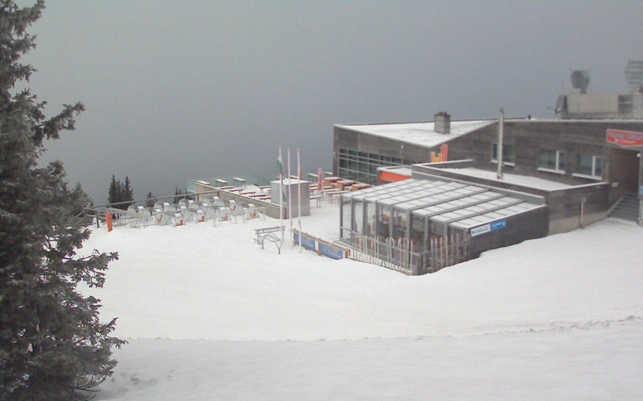 Outlook at the panoramic restaurant W11 at the top station of the lift Weißenelfbahn