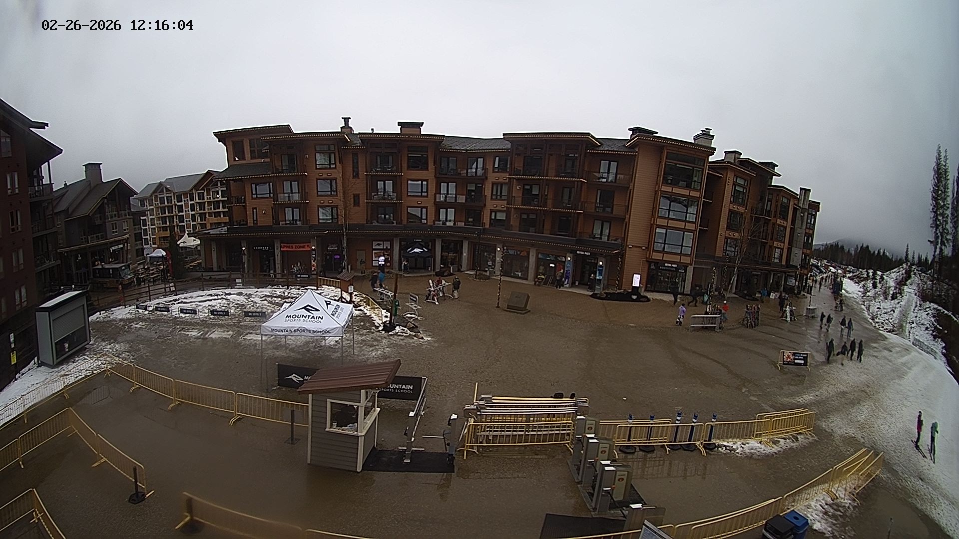 Archived webcam image showing Revelstoke Mountain Resort: View Village on 26 Feb 2026 at 12:03 03:00