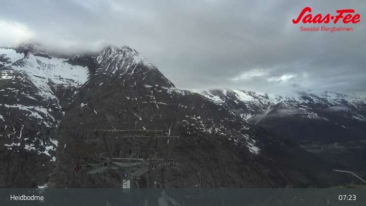 Archived webcam image showing Saas-Almagell: Top station Heidbodme on 29 Apr 2026 at 07:18 06:00