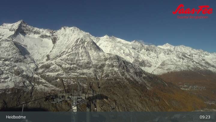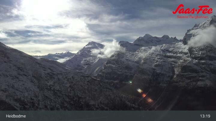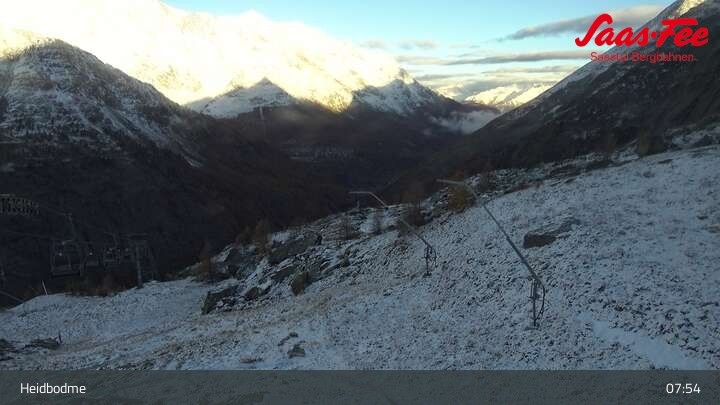 The webcam is located at the top station of the chairlift Heidbodme and thus at the highest point of the ski resort Saas-Almagell.
