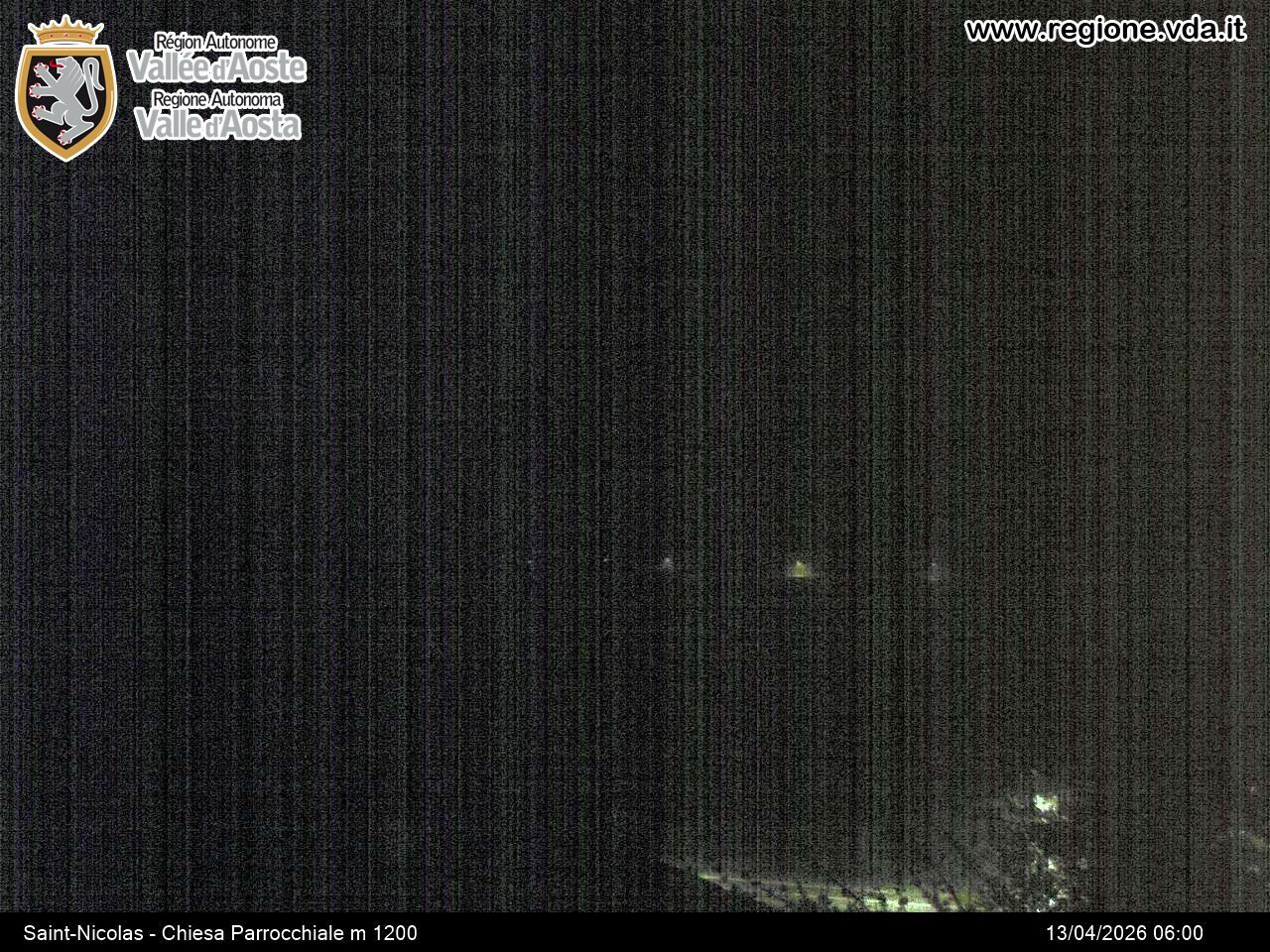 Archived webcam image showing Saint-Nicolas, Aosta Valley on 13 Apr 2026 at 04:20 03:00