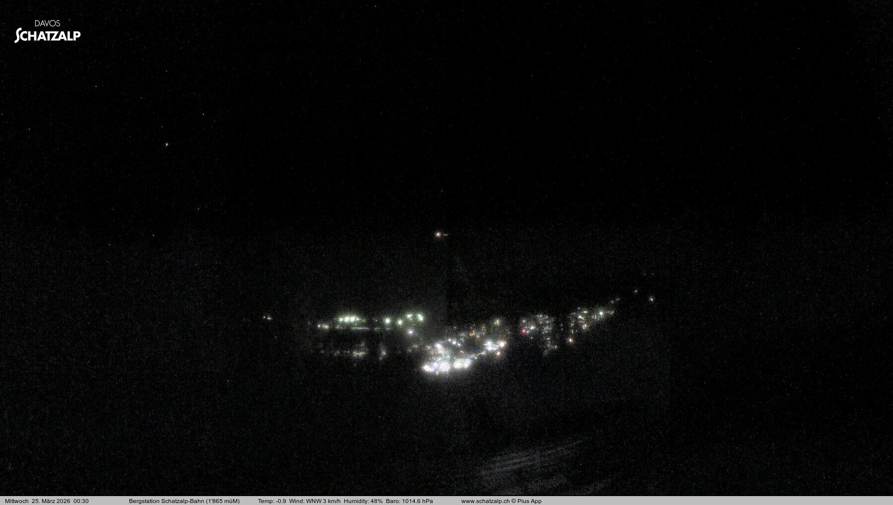 This webcam is located at the top station of the Schatzalp Bahn. You can see Davos in the background.