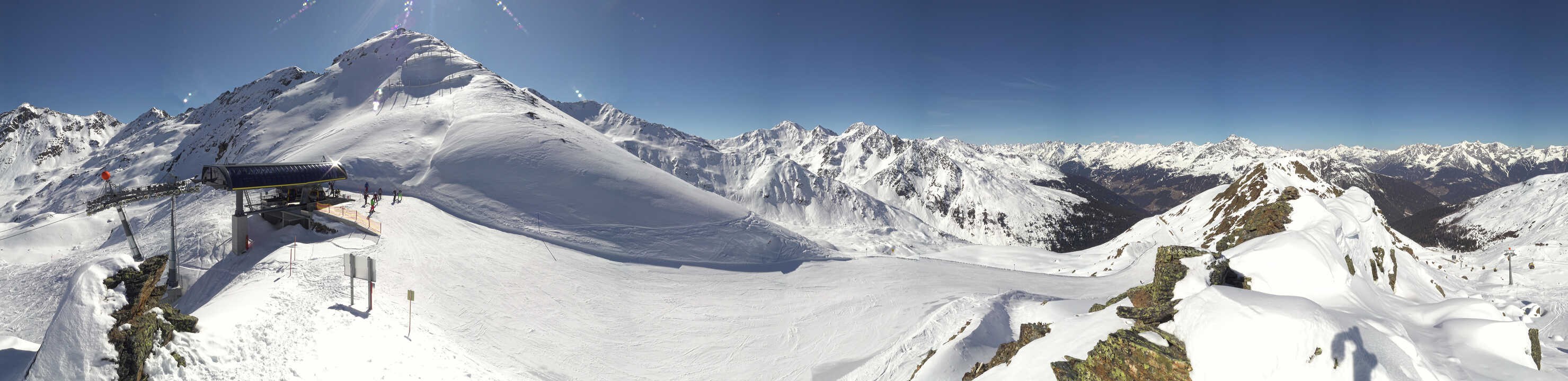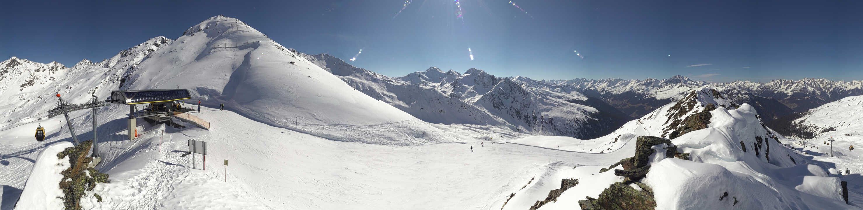 Panoramic view from the top station of the 8-seater-gondola Furglerblick in the ski area See in Tyrol.