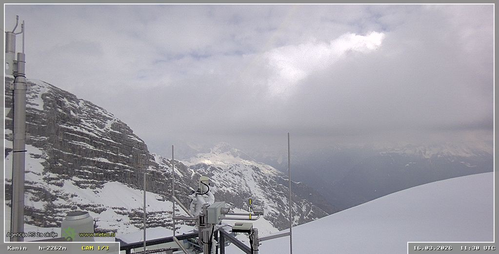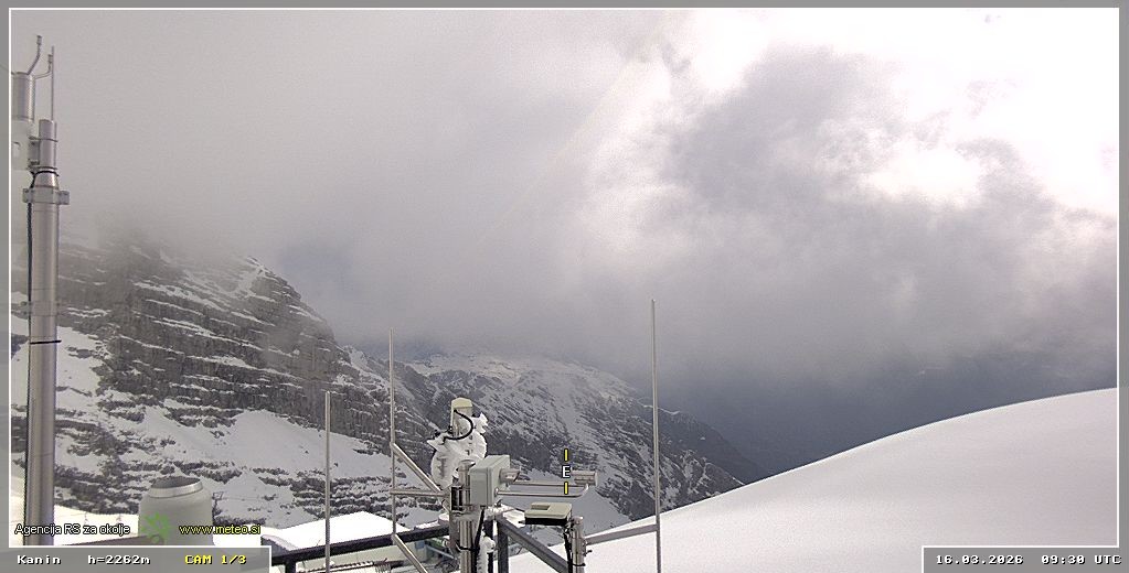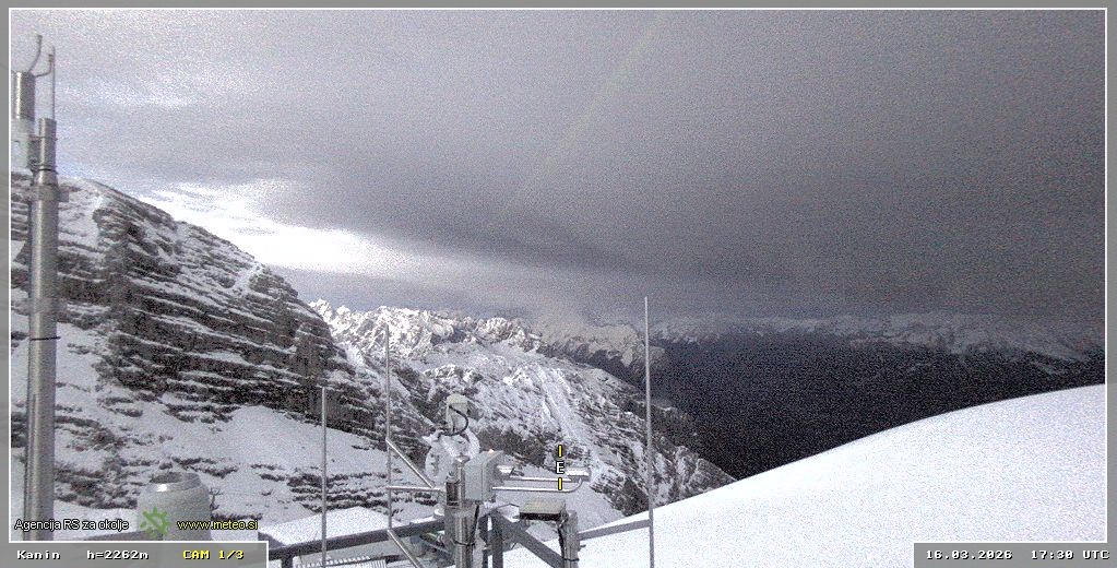 Archiviertes Webcam Bild: Skigebiet Sella Nevea - Bovec Kanin - Blick nach Osten am 16.03.2026 um 16:23 Uhr 16:00