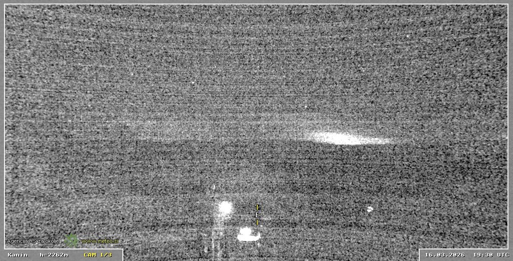 Archiviertes Webcam Bild: Skigebiet Sella Nevea - Bovec Kanin - Blick nach Osten am 16.03.2026 um 20:23 Uhr Latest