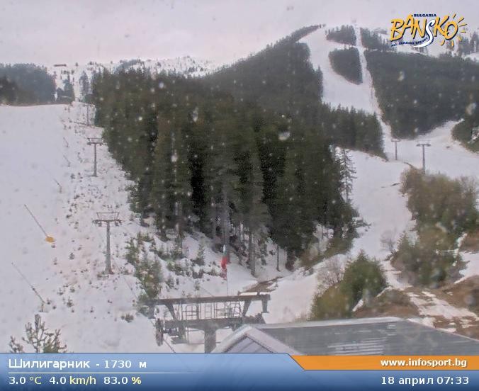Archived webcam image showing Shiligarnika in Bansko on 18 Apr 2026 at 07:25 07:00