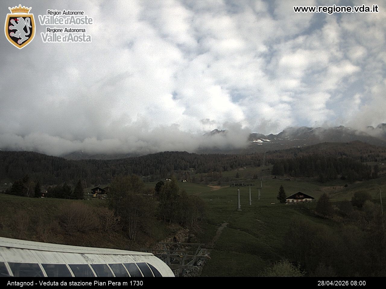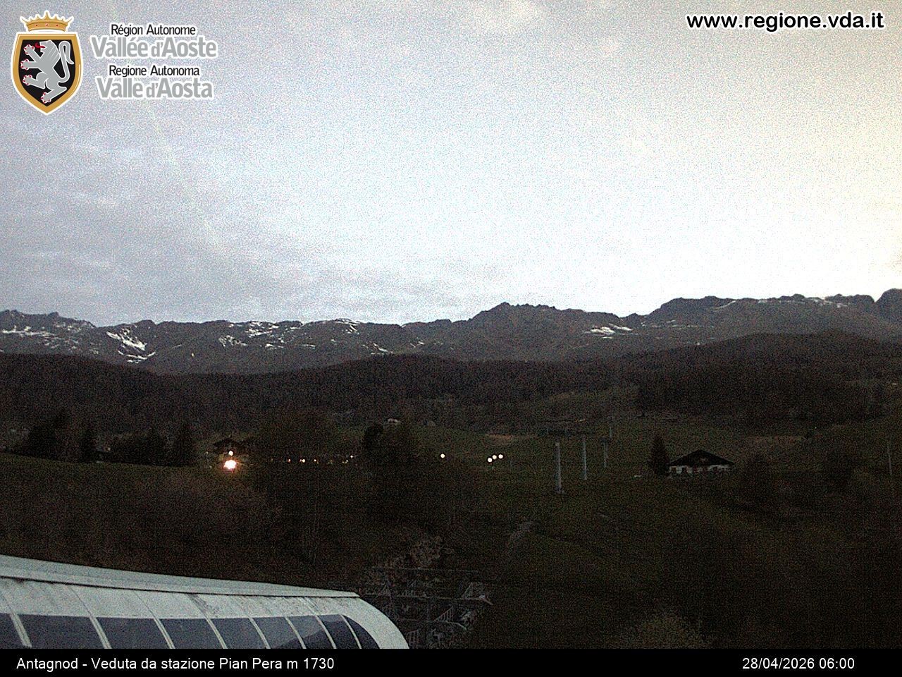 The webcam is located at the base station of the Pian Pera chair lift at Antagnod in the ski area Monterosa Ski.