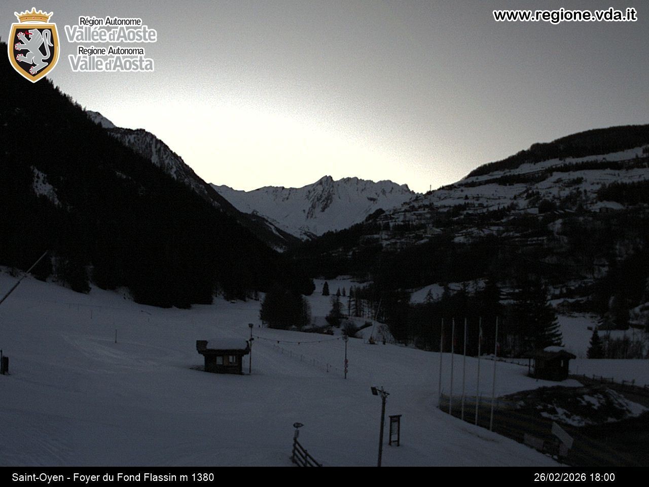Archived webcam image showing Ski run Flassin on 26 Feb 2026 at 18:22 Latest