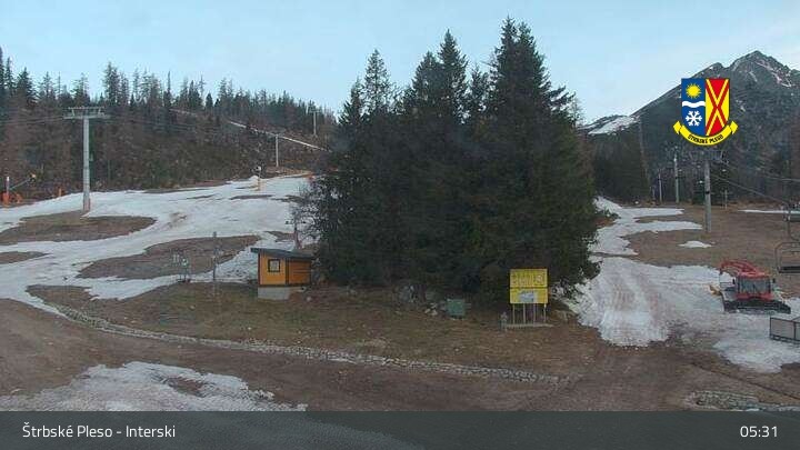 Archived webcam image showing Strbské Pleso Interski on 28 Apr 2026 at 05:27 04:00
