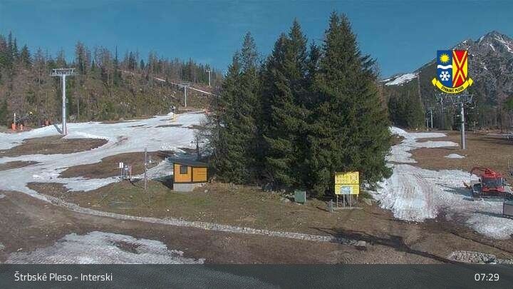 Archived webcam image showing Strbské Pleso Interski on 28 Apr 2026 at 07:27 06:00