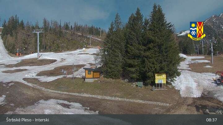 Archived webcam image showing Strbské Pleso Interski on 28 Apr 2026 at 08:27 07:00