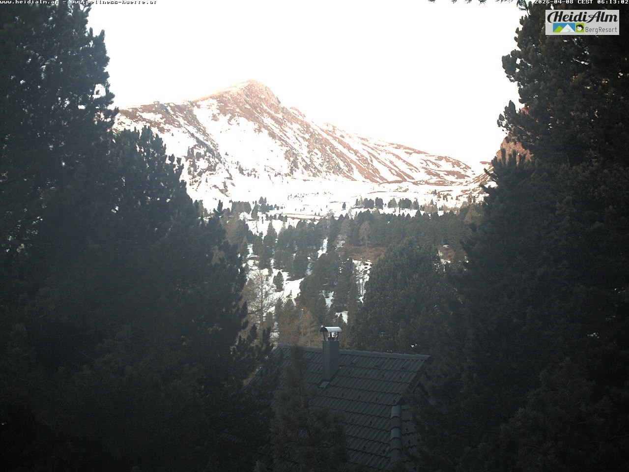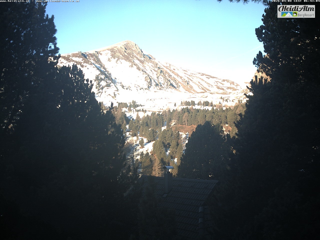 Archived webcam image showing Sun deck Wellness Hütte Heidialm at Falkert on 8 Apr 2026 at 06:49 05:00