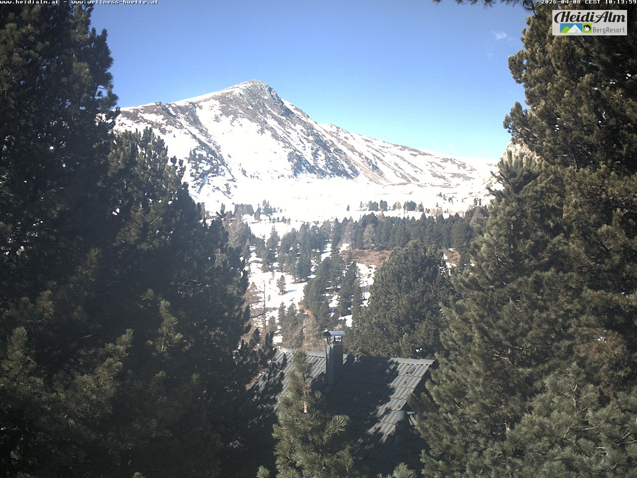 Archived webcam image showing Sun deck Wellness Hütte Heidialm at Falkert on 8 Apr 2026 at 10:49 09:00