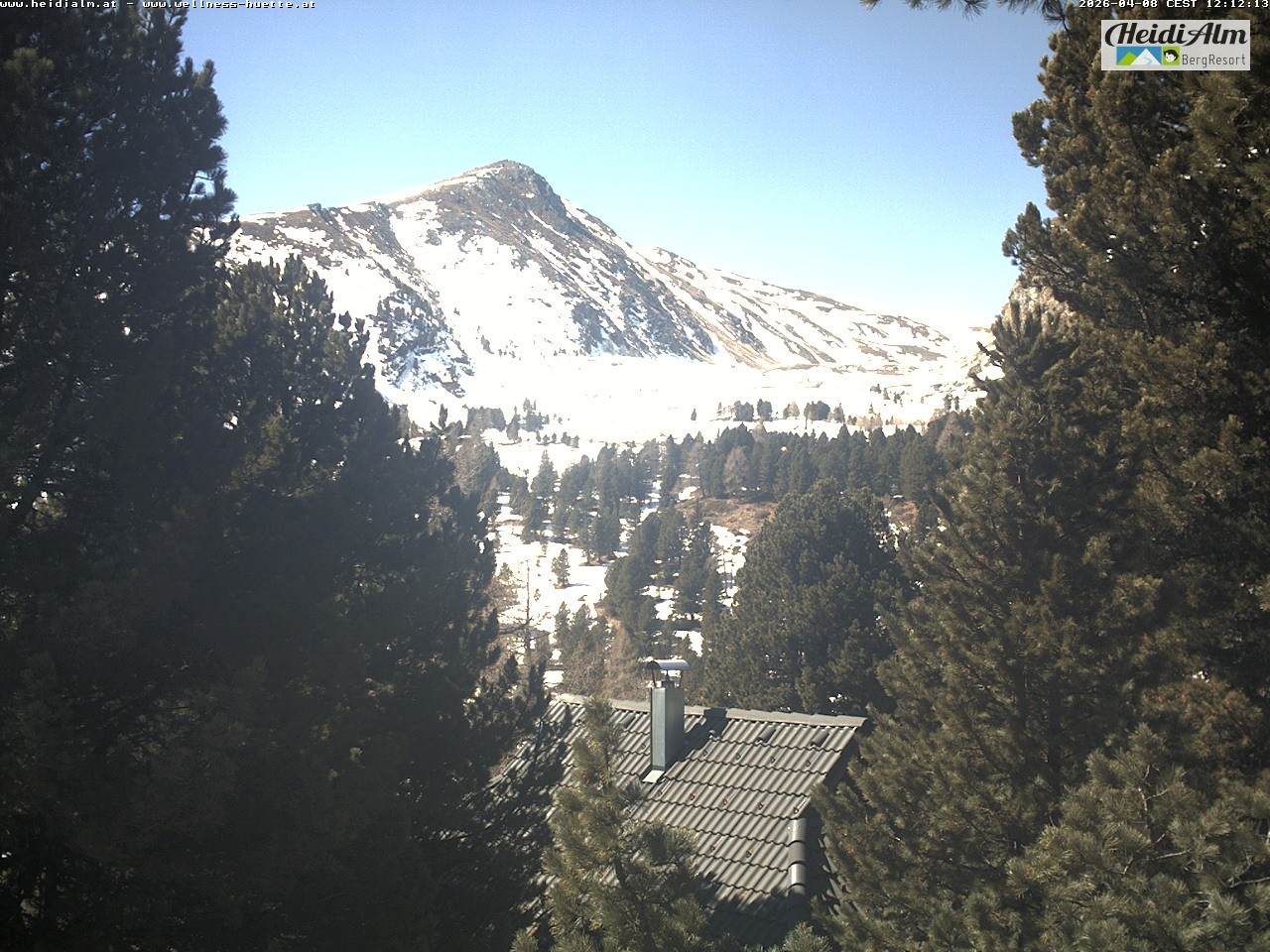Archived webcam image showing Sun deck Wellness Hütte Heidialm at Falkert on 8 Apr 2026 at 12:49 Latest