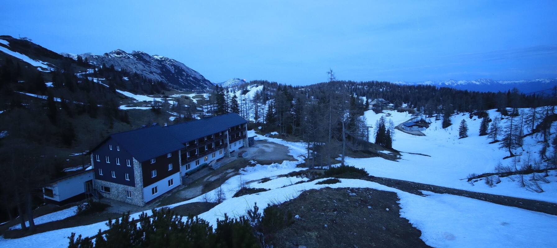 Archived webcam image showing Tauplitz - Haus Alpin at the Lawinenstein chairlift on 27 Apr 2026 at 20:22 19:00