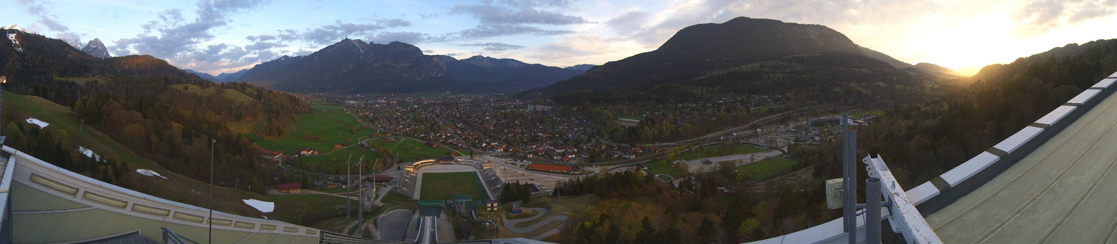 Archived webcam image showing Garmisch-Partenkirchen - Great Olympic Hill of the ski stadium on 18 Apr 2026 at 18:01 Latest