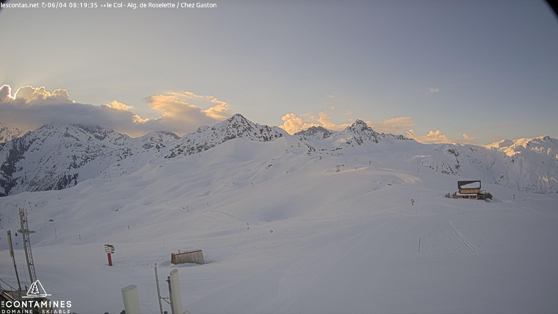 Archived webcam image showing Col du Joly: Les Contamines Montjoie on 6 Apr 2026 at 06:51 05:00