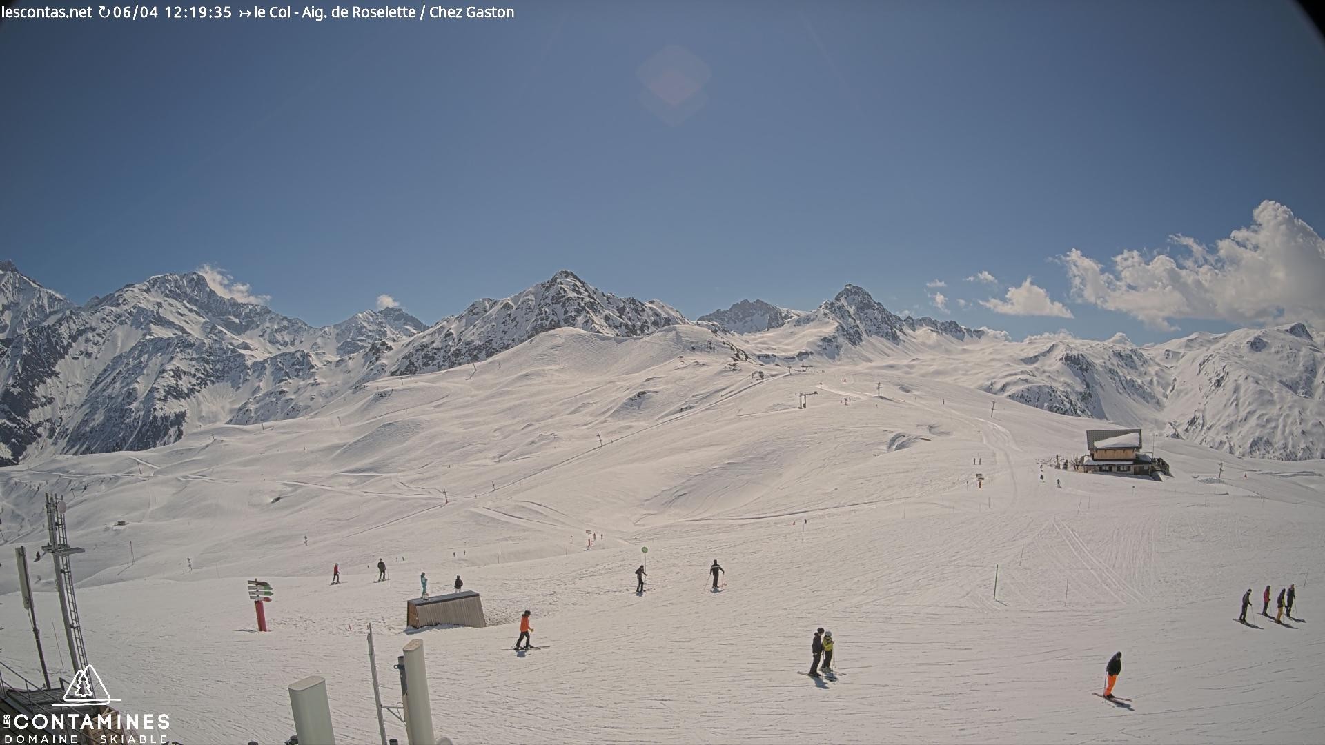 Archived webcam image showing Col du Joly: Les Contamines Montjoie on 6 Apr 2026 at 12:51 11:00