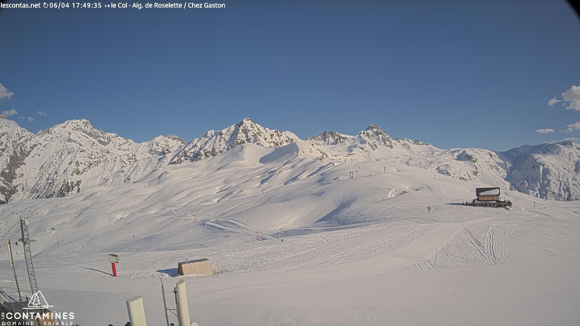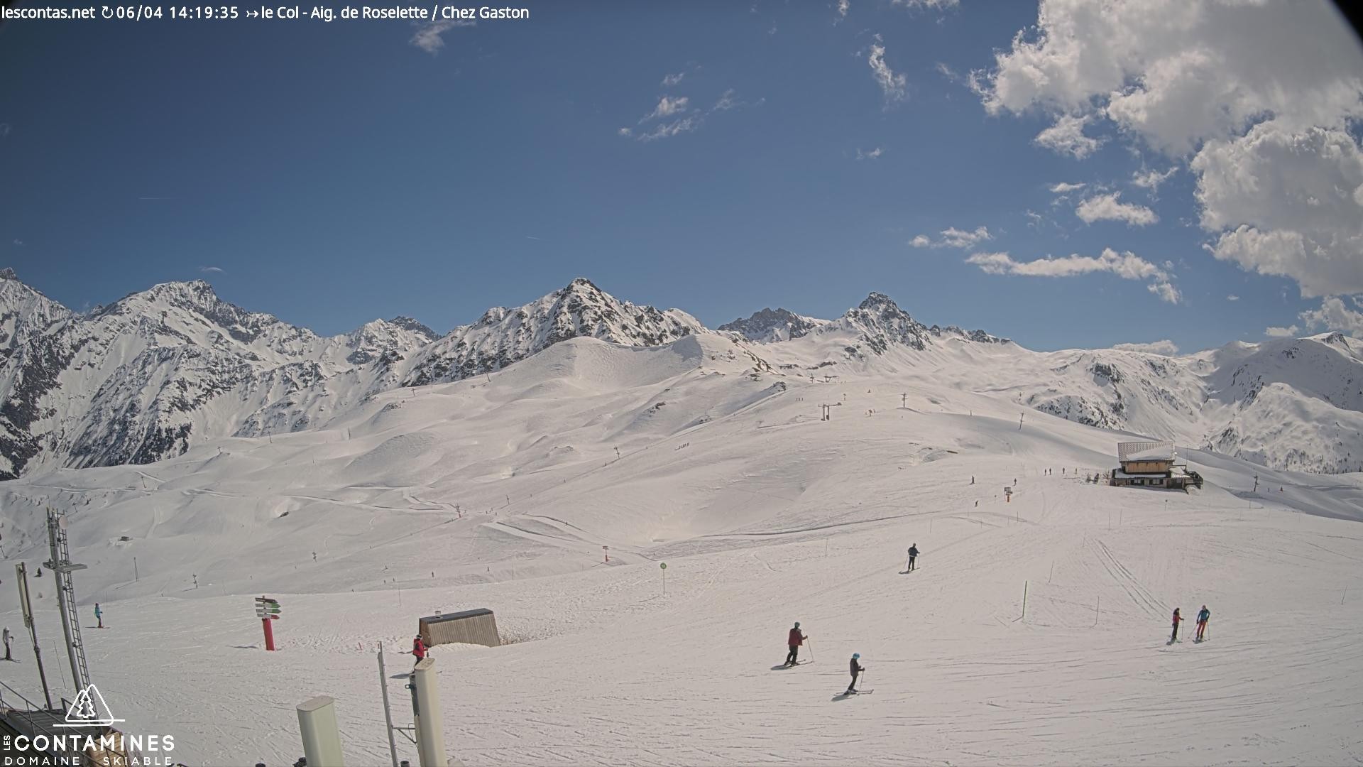 Archived webcam image showing Col du Joly: Les Contamines Montjoie on 6 Apr 2026 at 16:51 15:00