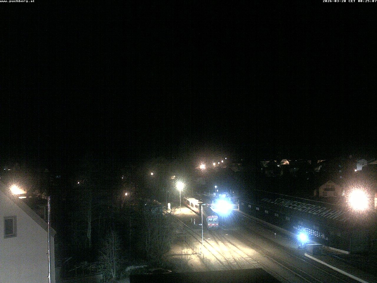Archived webcam image showing Train station Puchberg - view to the Schneeberg on 20 Mar 2026 at 00:05 23:00