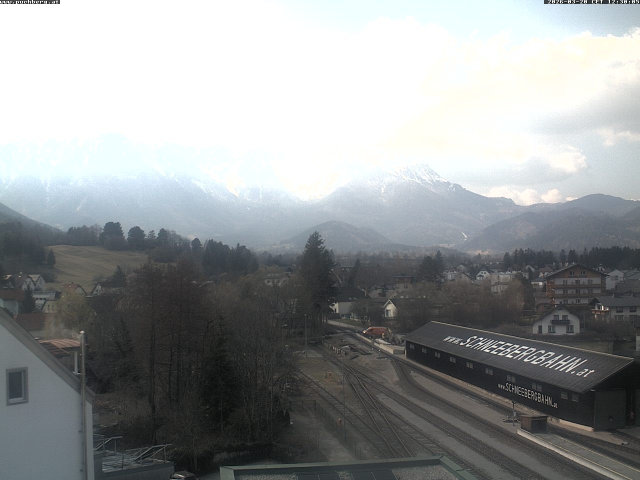 Archived webcam image showing Train station Puchberg - view to the Schneeberg on 20 Mar 2026 at 12:05 11:00