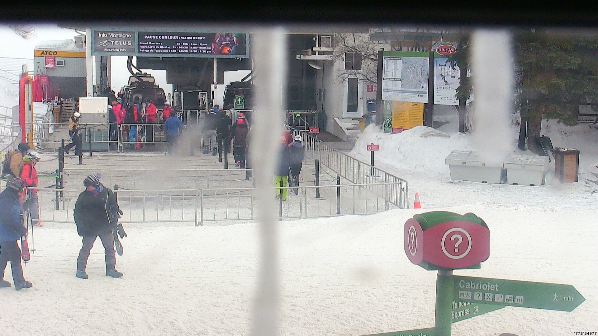 Archived webcam image showing Tremblant: South Base Express Gondola on 26 Feb 2026 at 08:56 01:00
