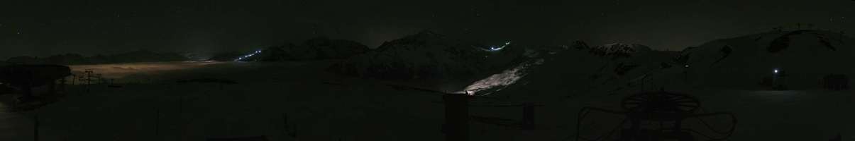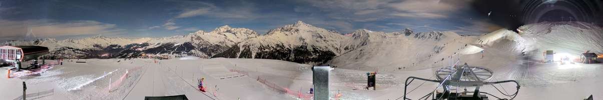 The webcam shows top station of chairlift Bijolin in french ski resort Montchavin les Coches .