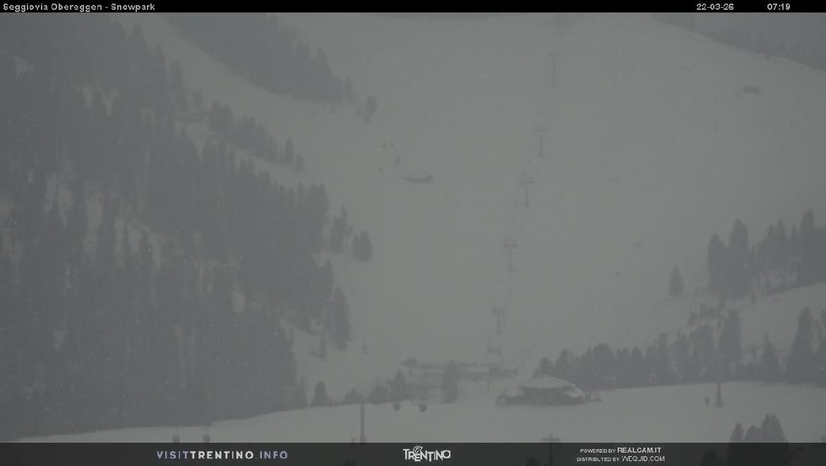 Archived webcam image showing Val di Fiemme - Obereggen chairlift on 22 Mar 2026 at 08:24 07:00