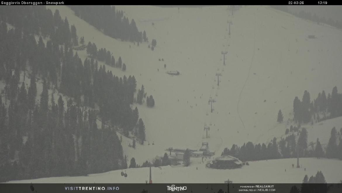 Archived webcam image showing Val di Fiemme - Obereggen chairlift on 22 Mar 2026 at 14:24 13:00