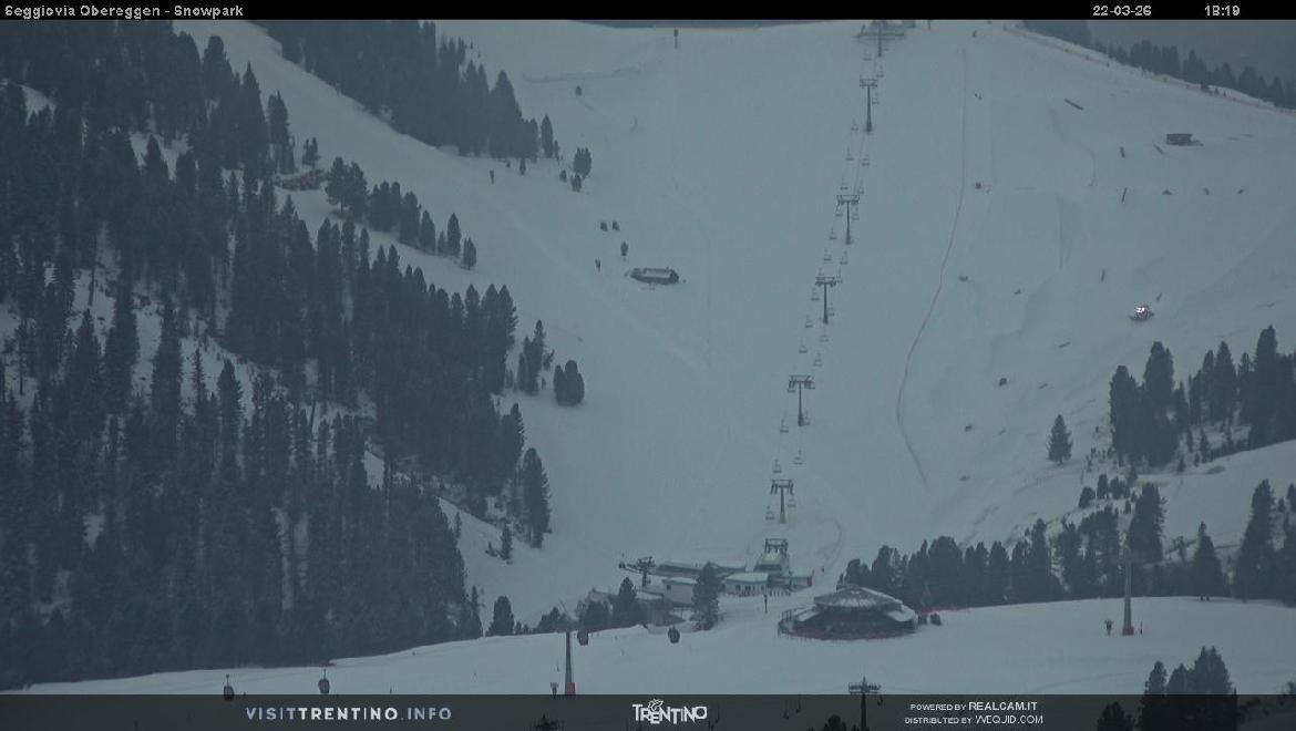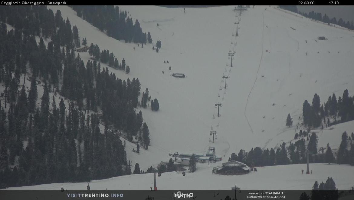 Archived webcam image showing Val di Fiemme - Obereggen chairlift on 22 Mar 2026 at 18:24 17:00